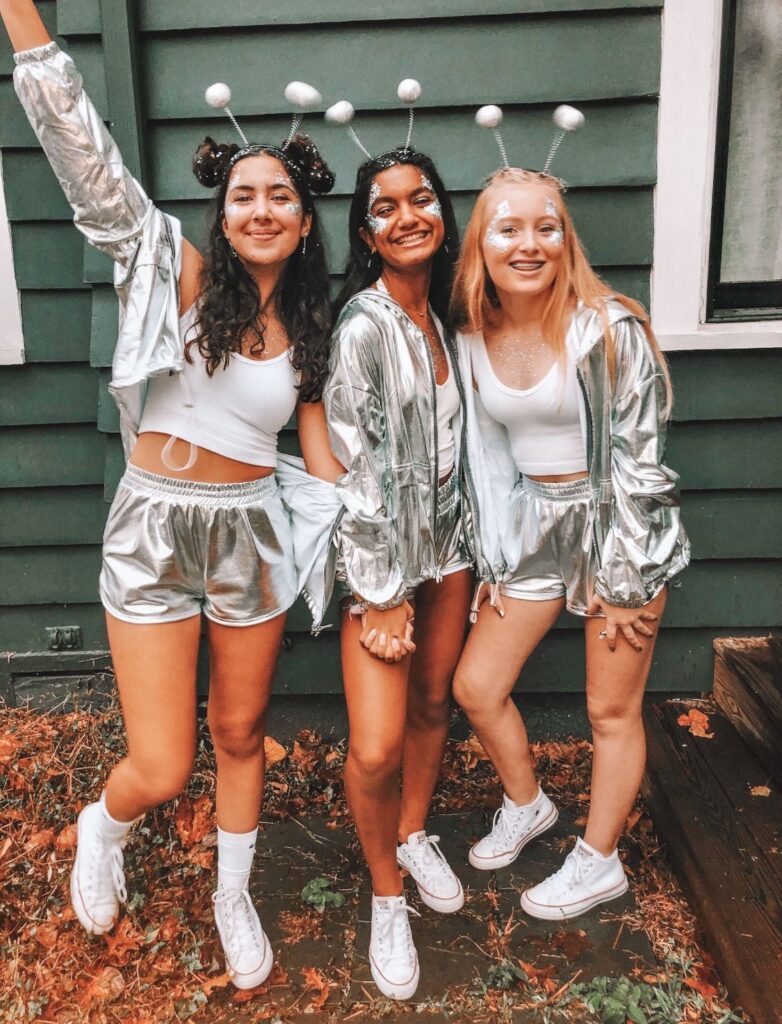 Aliens are such a cute and classic costume that will generate buzz every Halloween. All you need are silver shorts, a silver jacket, antenna headbands, and a bit of silver makeup.