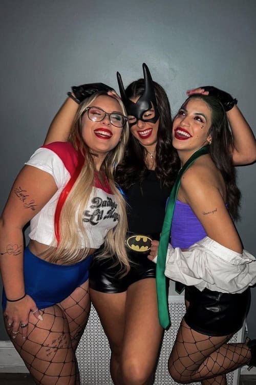 This is one of the best trio Halloween costumes, in my opinion. Harley Quinn and Joker obviously go together, and throw in Batwoman, and you’ve got an iconic look.