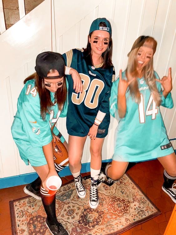 Grab an oversized jersey, a football, and a cap for this super-easy trio Halloween costume.