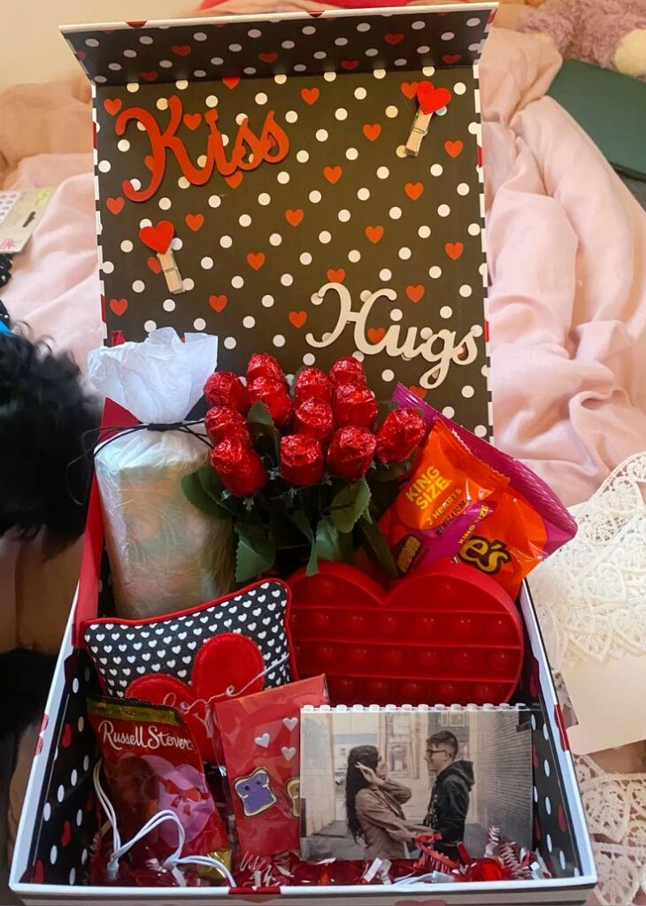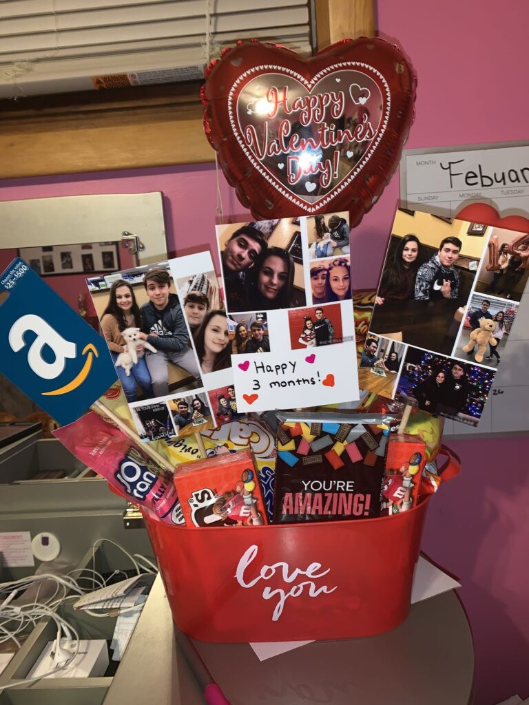 Head to your local Dollar Store and buy their favorite snacks, a heart-shaped pop fidget, roses, Hershey’s kisses, and a cute picture of the two of you together.