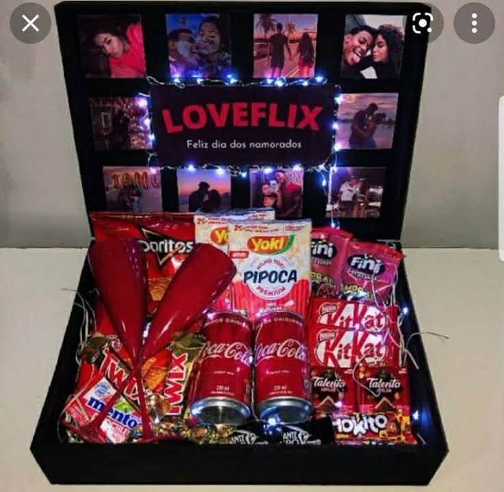 Glue on some of your favorite pictures all around the lid of the box and add some LED lights. Now, include all of your guys’ favorite movie snacks.